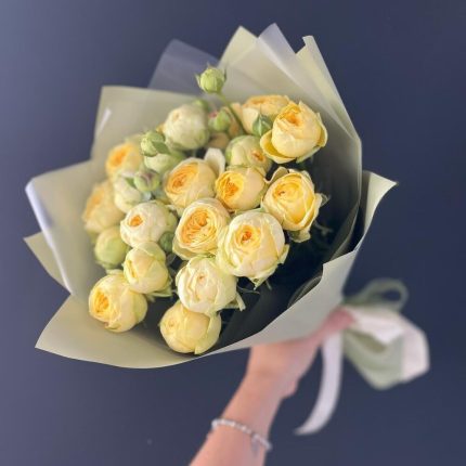 packaging design – 2 шт. gift message card – 1 шт. peony spray rose – 3 шт. free delivery – 1 шт. care instruction – 1 шт. spray rose cream – 4 шт.