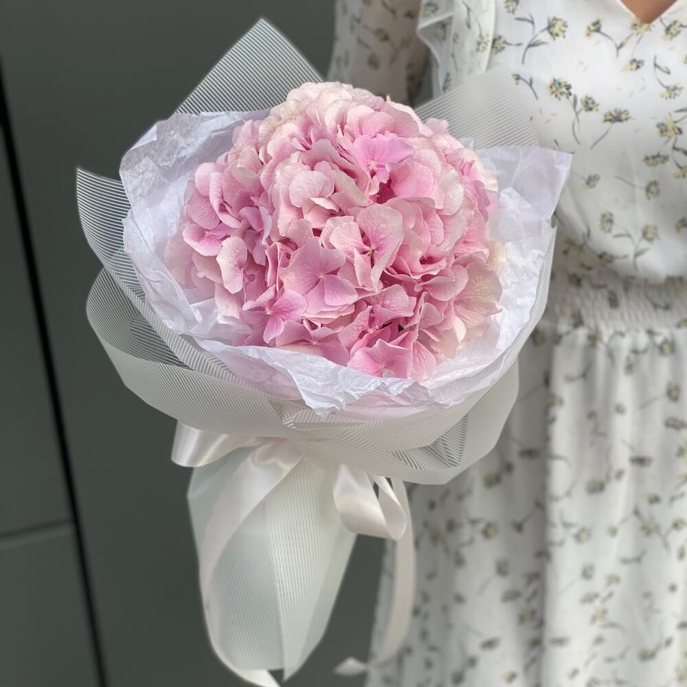 Букет из одной ветки нежно розовой гортензии в оформлении!