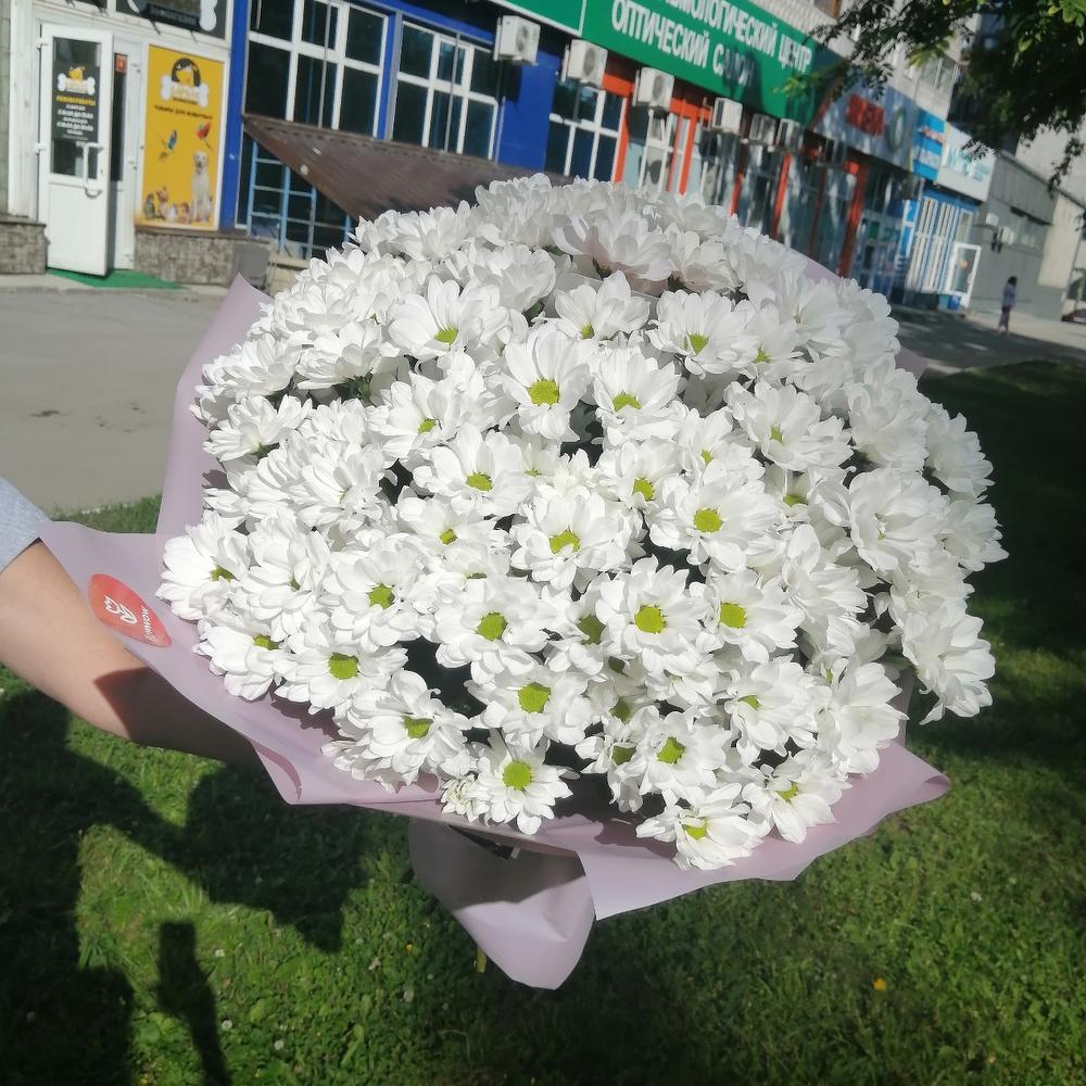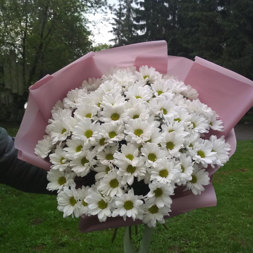 Шикарный букет из белых хризантем подарит настроение не только вам, но и вашим близким.