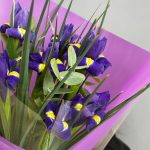 Букет из ярких фиолетовых ирисов и стойкой альстромерии