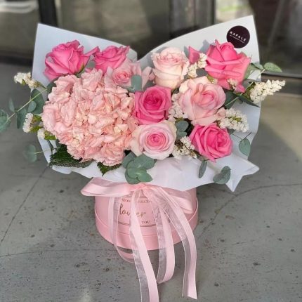 45 роз розовых и белых в коробке